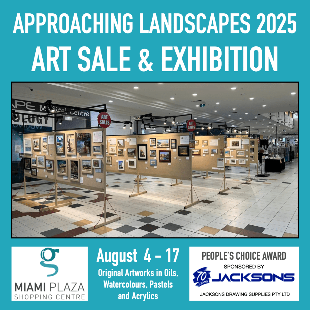 Another successful Approaching Landscapes Exhibition was held in August at MIami Shopping Centre. The quality of paintings on display was exceptional with priase for the exhibits from far and wide. Well done to all the artists who sold paintings in 2025.