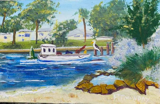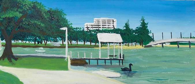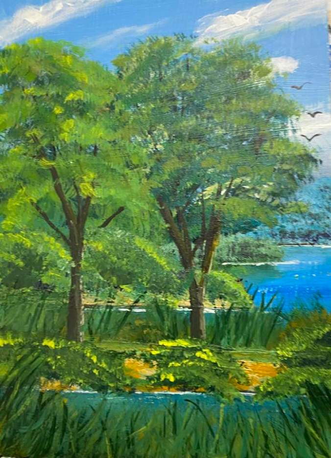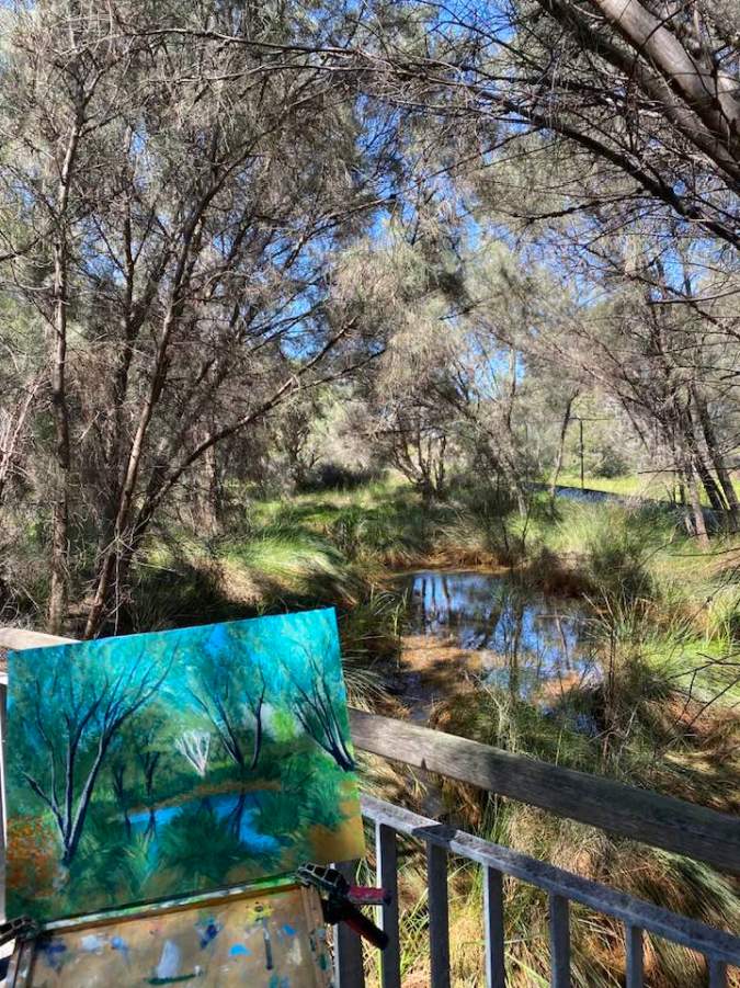 Peter is a familiar face on our Tuesday paintouts. Peter takes inspiration from Australian Landscapes and brings his own style and interpreation to the beauty of nature all around us. Peter works in acrylics and the colour palette he brings to his paintings is bright and vibrant. Peter is a well deserved Artist of the Month.