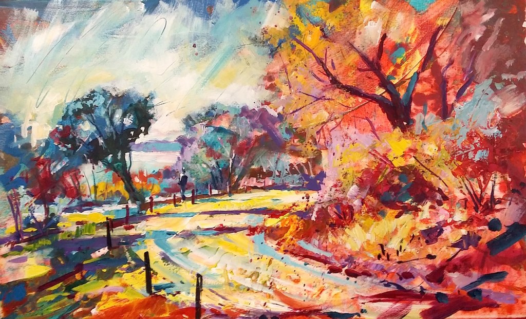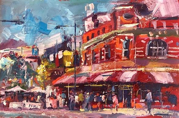 For his ‘en Plein air’ works he uses a more traditional approach but still includes some bright colours. Jos loves painting buildings and streets as well as landscapes. Jos sets himself regular challenges where he paints en Plein air every day for a month.