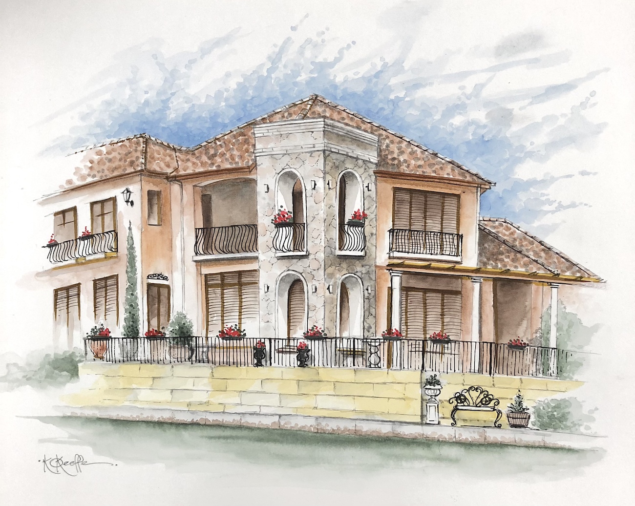 Painting outdoors, Karen usually works in a variety of watercolour and pen mediums, while her larger studio works are predominantly acrylics.