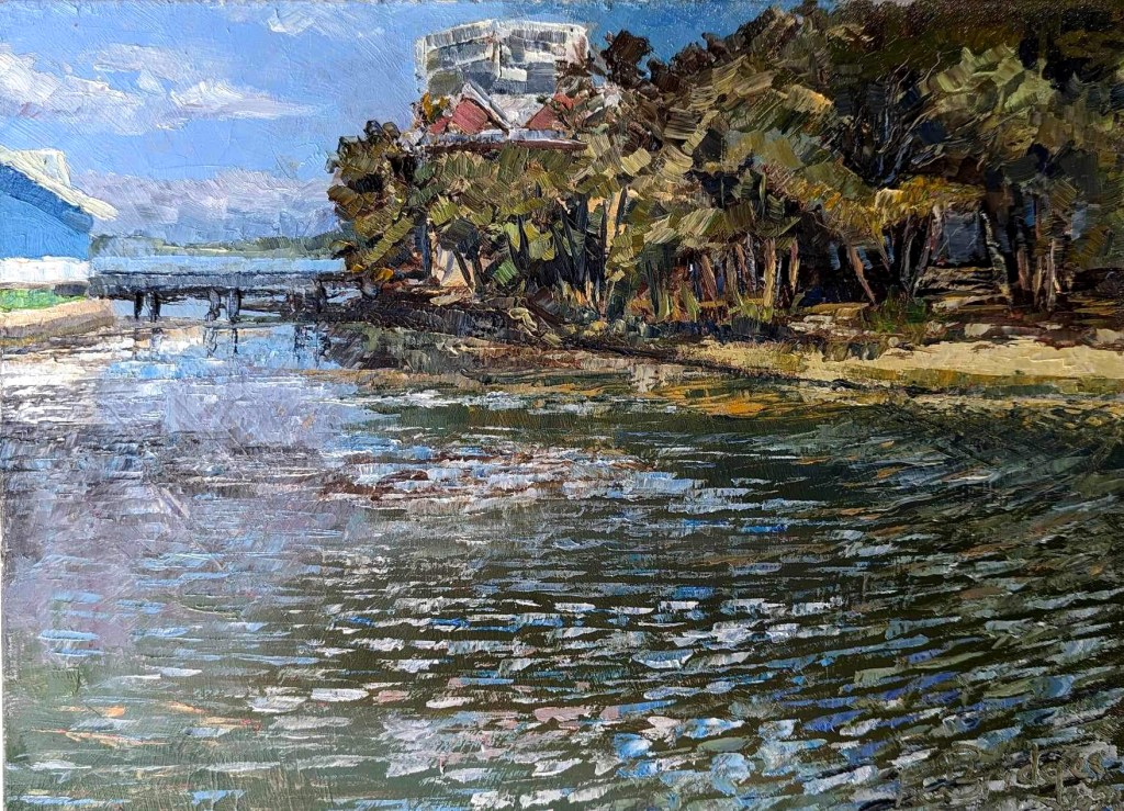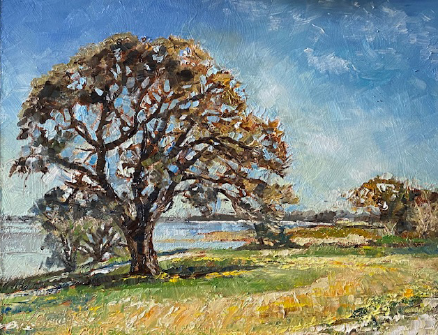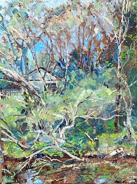 Her process of painting elements of nature, is a very meditative, self-absorbed process, mixing emotion, energy and her eye’s perception with oils applied by both knife and brush.